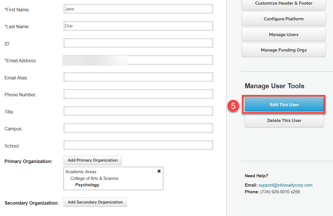 Super Administrators (or Global Administrators when microsites are enabled) can edit user roles from the Admin tab. The most common reason to change a user's role is when a Super (or Global) Administrator is assigning or removing Administrators from the platform.
