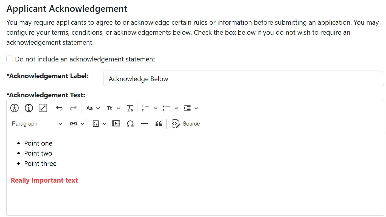 - For detailed instructions, see this article: Form Designer Template: Acknowledgment Statement