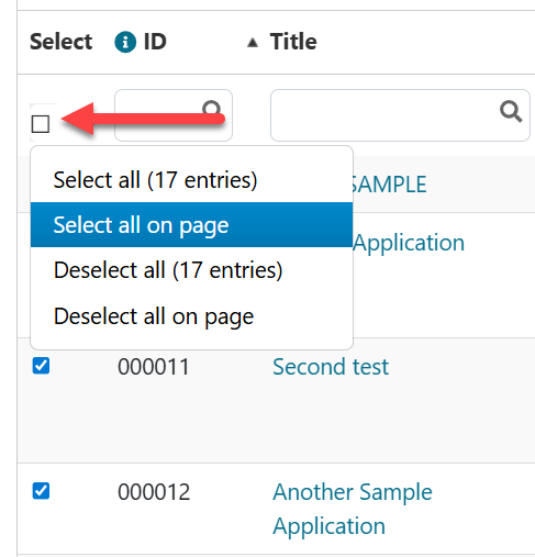 Note: Choosing "Select all on page" will not deselect any applications on other pages.