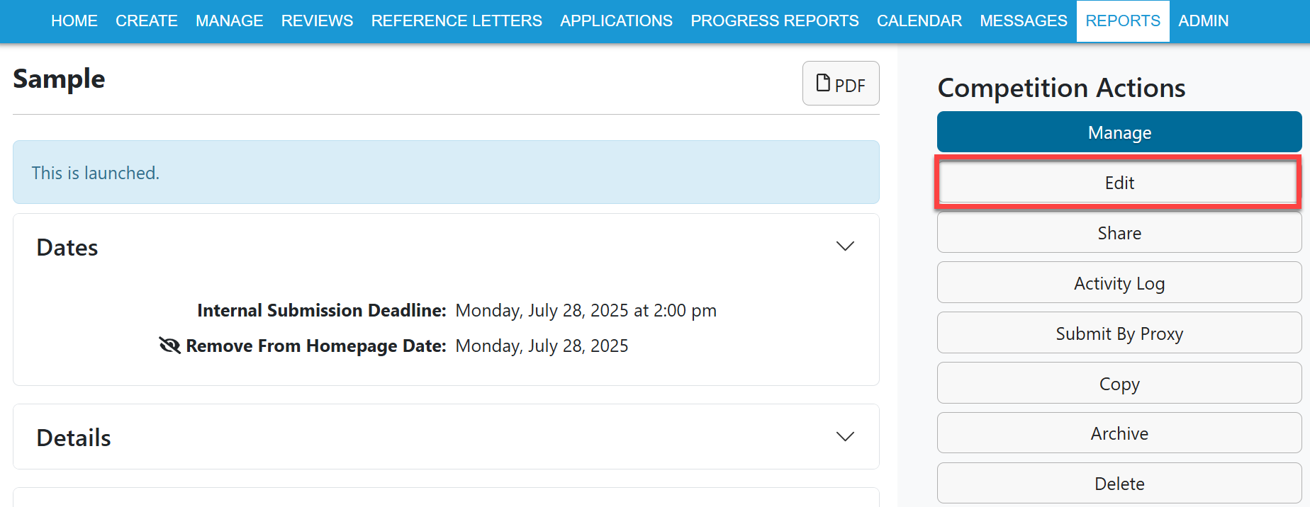 - If the opportunity has already been launched, click Save Edits button on lower right hand side of the screen.
