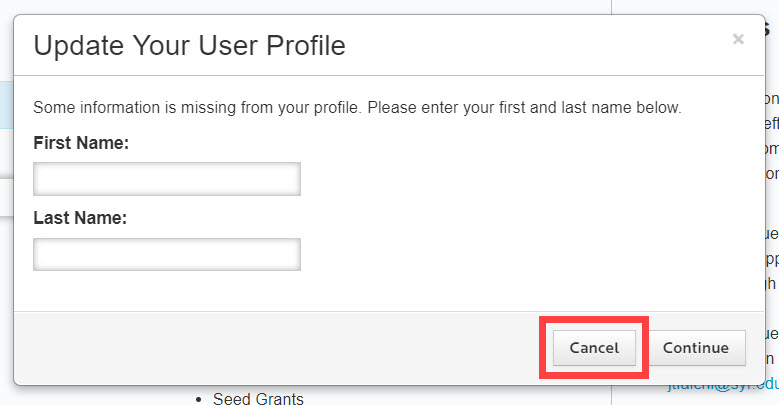 If a user doesn't want to add their names at the present time, they can click Cancel. The next time the user logs in, they will be prompted with the same screen.