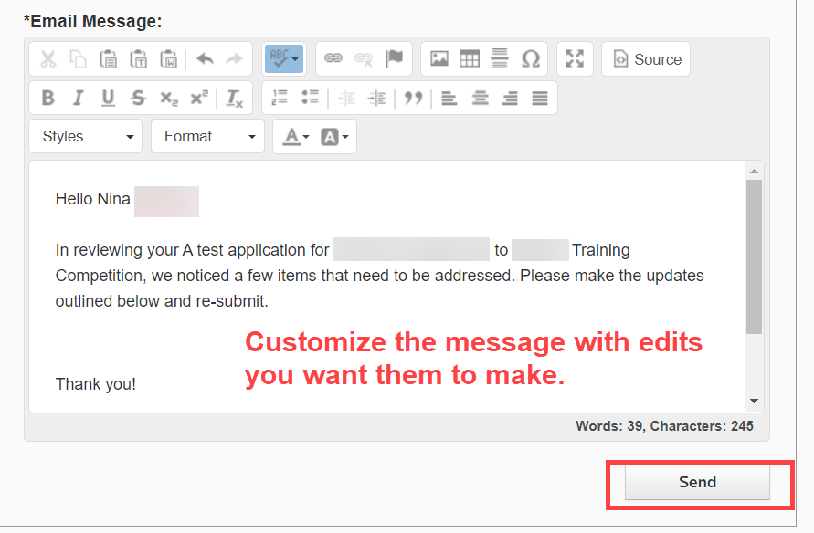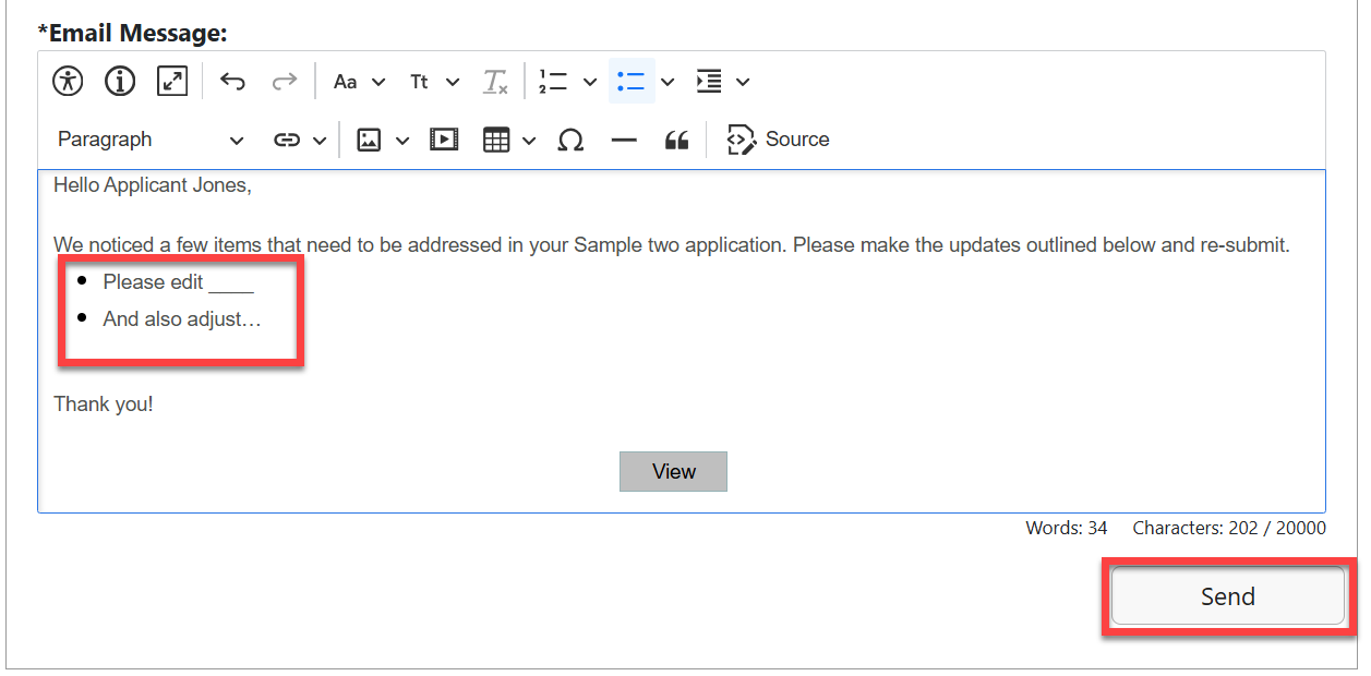 If an application has been submitted but an administrator needs the applicant to make edits, they can return the application to the applicant.