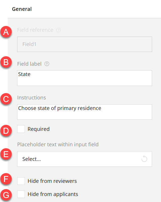 F. Hide from reviewers (optional) - Check to hide the question and applicants' responses from reviewers.
