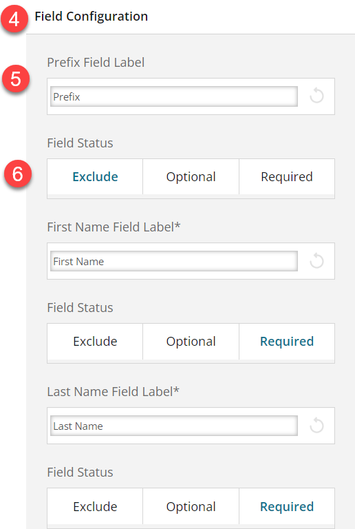 6. Select if each field should be Excluded (i.e., not displayed to applicants) Optional, or Required.