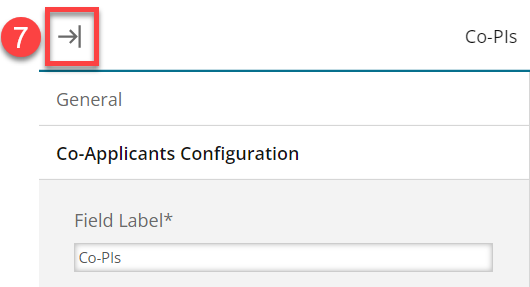 7. Repeat steps 4-6 for all fields, and then scroll up and click the arrow (shown below), or click onto the main part of form (i.e., middle of page) to collapse the configuration panel.