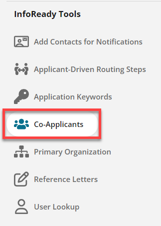 It does NOT give these individuals access to the application in InfoReady. Rather, administrators can select which information they need regarding co-applicants so that is collected in an organized and standardized way for reporting purposes.