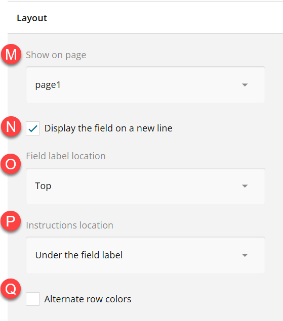 N. Instructions location - Choose either under the field or under the field label
