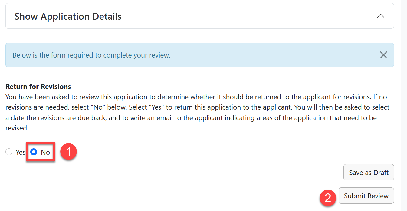 If you have been assigned as a reviewer for an application, you may have the option of returning it back to the applicant with your feedback so that they can make edits and re-submit.