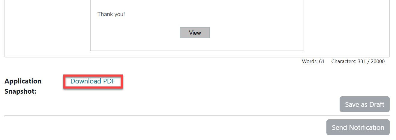 - A - Click the PDF button to download a packet of the application, including file uploads.
