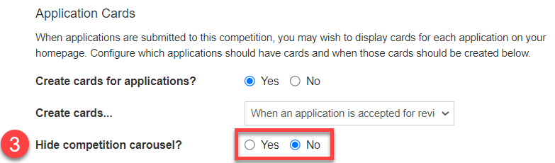- Yes - Application cards will only appear to logged in InfoReady Admins (hidden from most users).